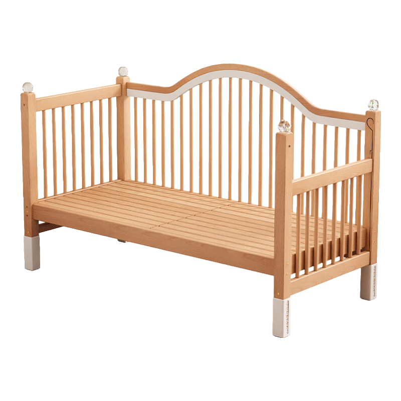 喜优比榉木拼接床加宽可升降加高护栏无缝延边防夹手实木婴儿床拼接大床 侧升降+尾开门款+6cm椰棕床垫 200*50cm【可升降】
