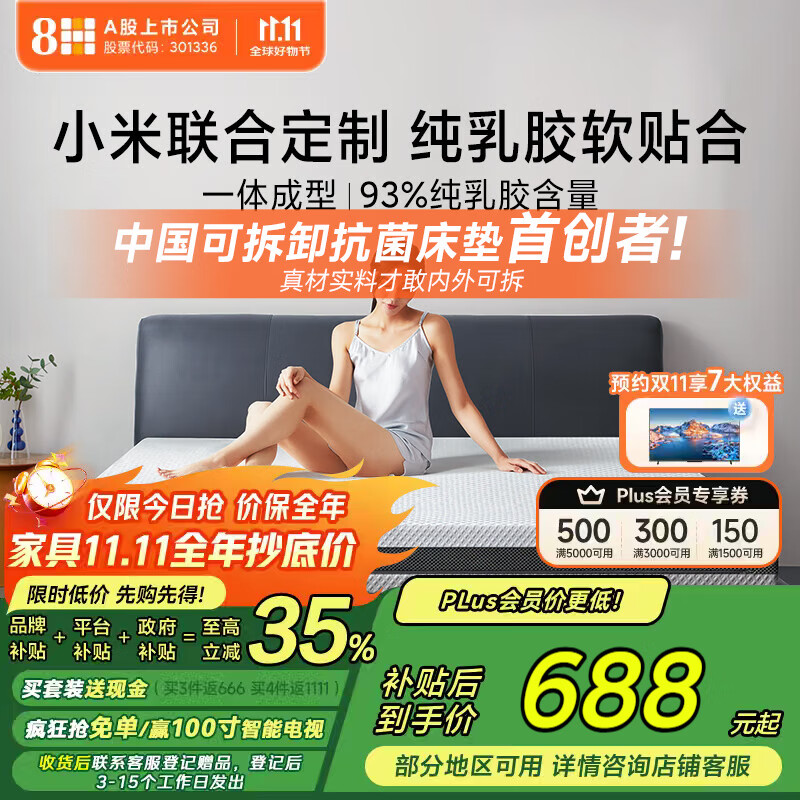 喜临门乳胶椰棕床垫抗菌防螨独袋弹簧床垫 梦蝶旗舰版1.8x2米 软硬适中