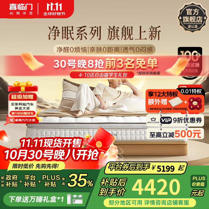 喜临门净眠乳胶床垫轻音独袋弹簧羊毛除甲醛床垫 电动床垫温控 净眠系列 M60【除甲醛/整垫0胶/软硬可调】 1.8*2米(指定款式闪送)