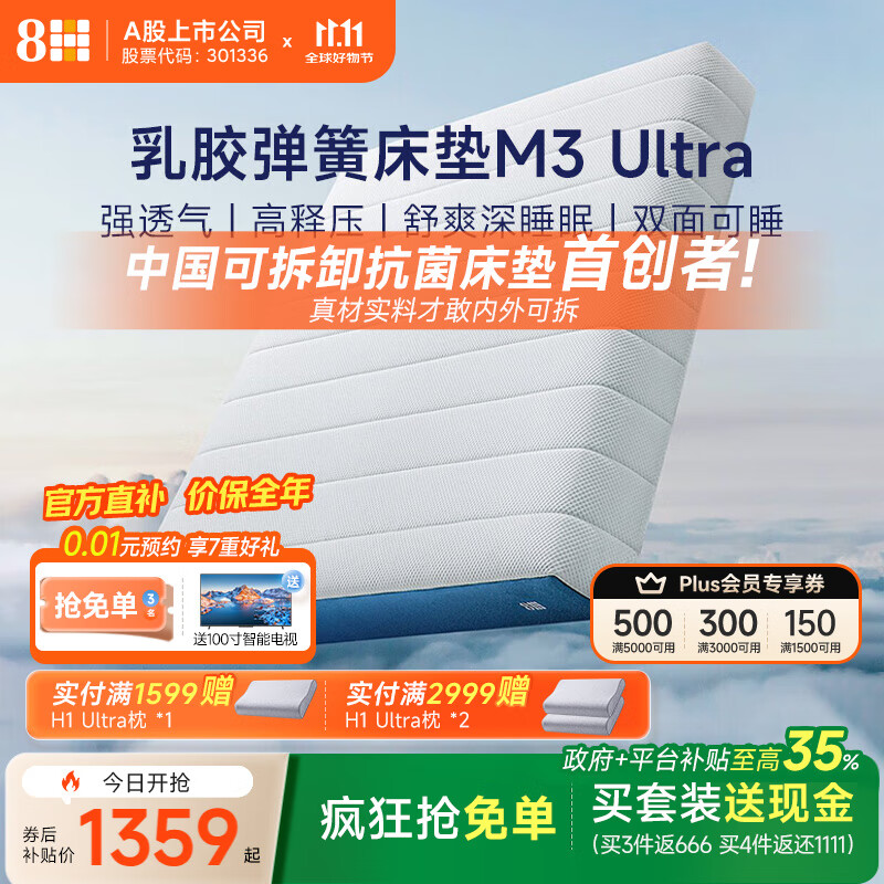 8H 可拆洗乳胶弹簧抗菌床垫软硬两用全面透气睡垫M3ultra 龙晶蓝-M3ultra 1.8米*2米