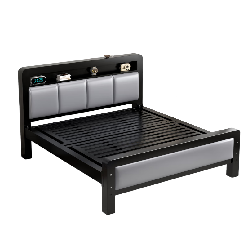 卡森琅【加厚20根龙骨】铁艺床双人床1米8家用卧室单人床加固加粗铁床架 黑床架平尾+5cm床垫【灰软包】 1000mm*1900mm【加厚20根龙骨】