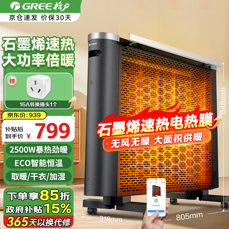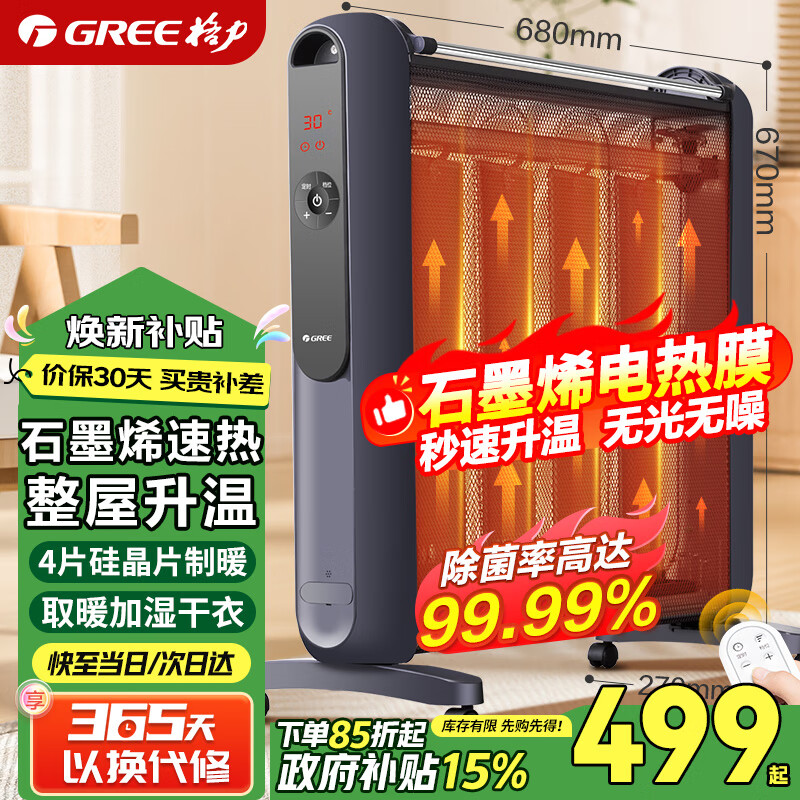 格力(GREE)取暖器家用大户型升温电热膜 大面积恒温电热采暖暖气片可移动加湿干衣电采暖机电暖器 石墨烯速热款NDYQ-X7025B
