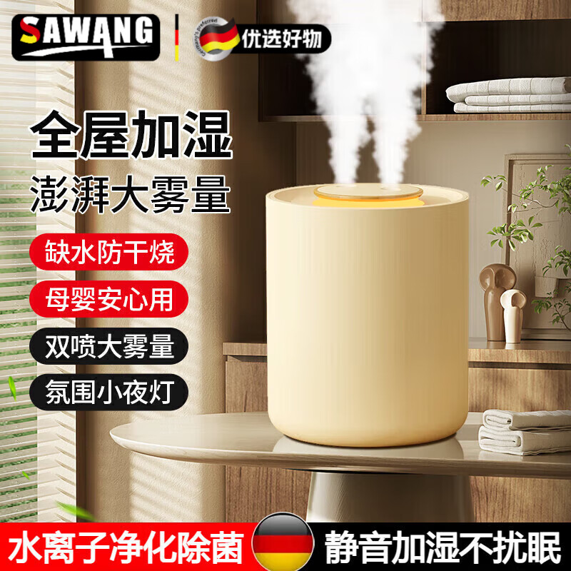 飒望德国高端加湿器小巧静音大雾量卧室家用桌面小型轻音便携式香薰精油雾化器2025新升级小巧便携补水 [双喷款/小夜灯/USB]插电款