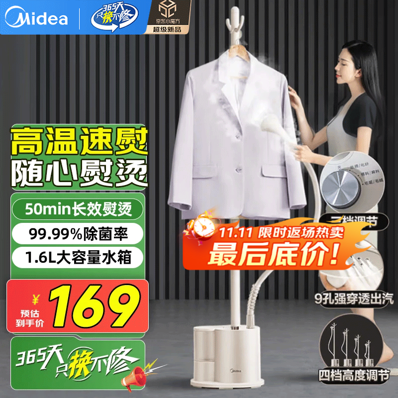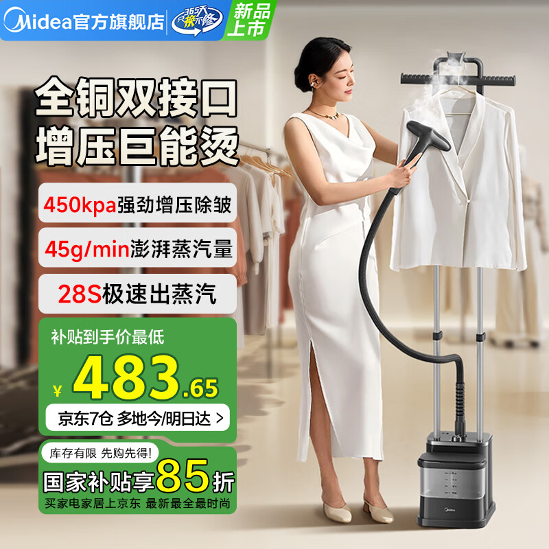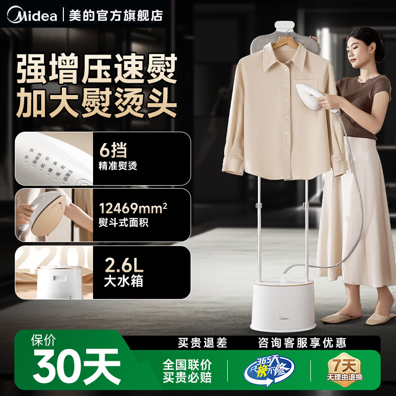 百亿补贴:美的(Midea)挂烫机家用立式增压蒸汽熨烫机除皱定型衣物护理机商用服装店专业熨烫机蒸汽电熨斗礼品礼物 【升级增压蒸汽】珍珠白30k1