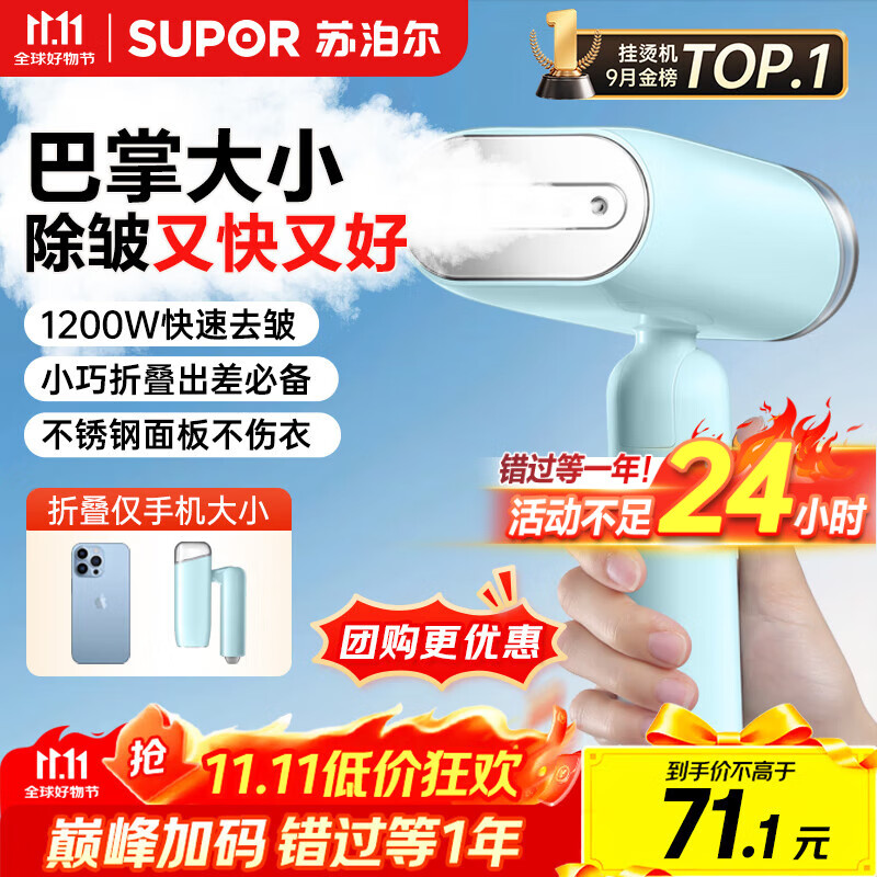 苏泊尔(SUPOR)手持挂烫机家用迷你烫衣机小型蒸汽电熨斗便携式旅行熨衣服熨烫机礼品GT70AX-12国家补贴