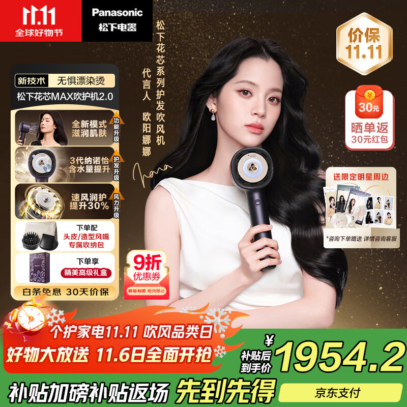 松下(Panasonic)【欧阳娜娜同款】花芯MAX 2.0高速吹风机纳诺怡电吹风筒护发家用速干不伤发送女友生日礼物EH-NX81