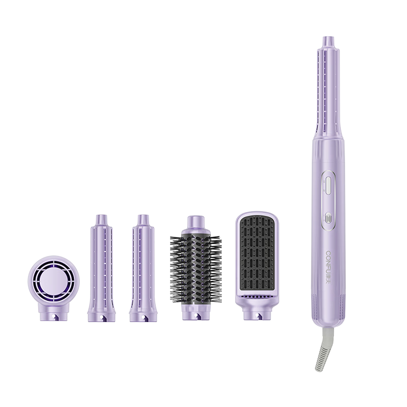 康夫(CONFU)高速电吹风机多功能卷发棒直发蓬松美发直发梳多功能家用懒人送女友情人节礼物F6 罗兰紫