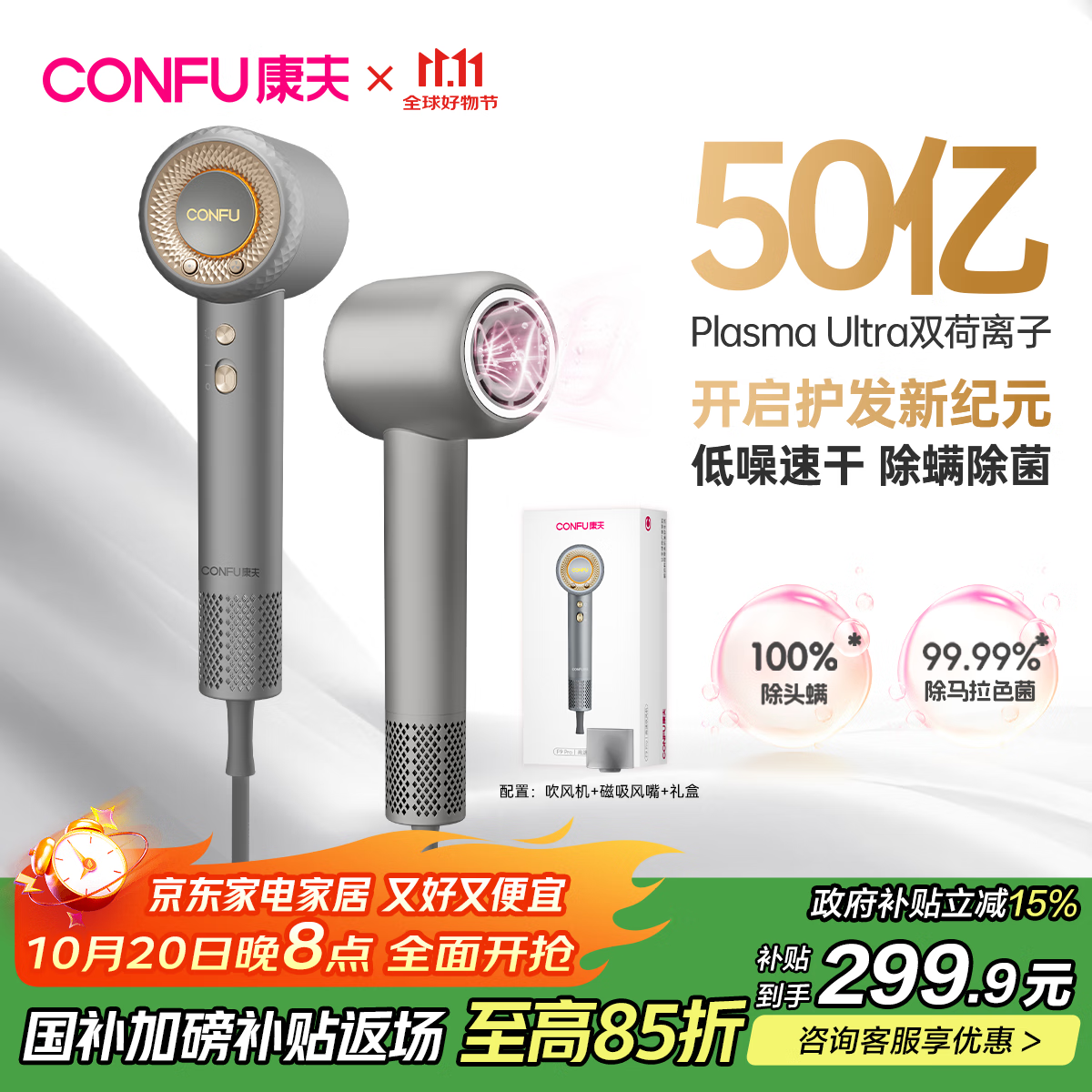 康夫(CONFU)高速电吹风机50亿等离子护发家用大功率速干除螨除菌生日礼物吹风筒F9Pro钛空灰国家补贴