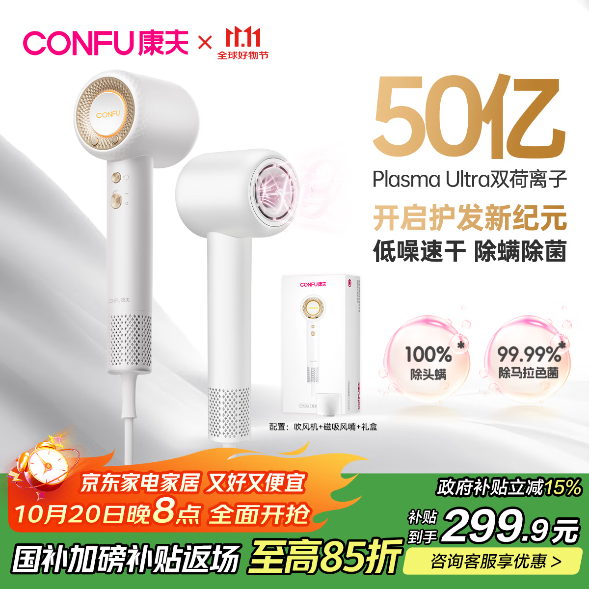 康夫(CONFU)高速电吹风机50亿等离子护发家用大功率大风力速干生日礼物送女友吹风筒F9Pro白国家补贴