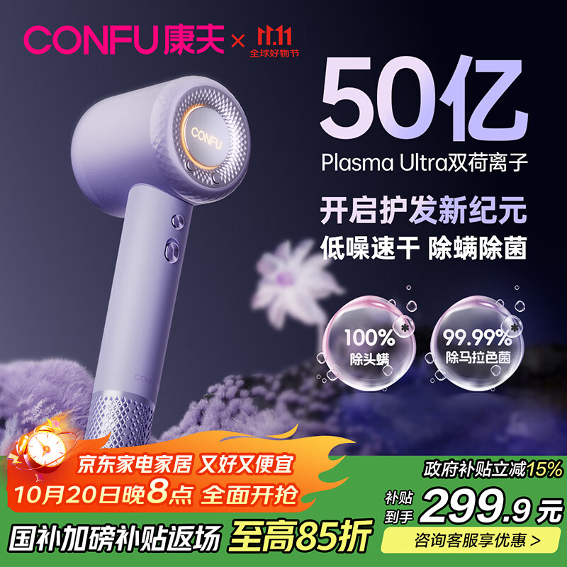 康夫(CONFU)高速电吹风机50亿等离子护发家用大功率大风力速干生日礼物吹风筒F9Pro尤莱特紫国家补贴