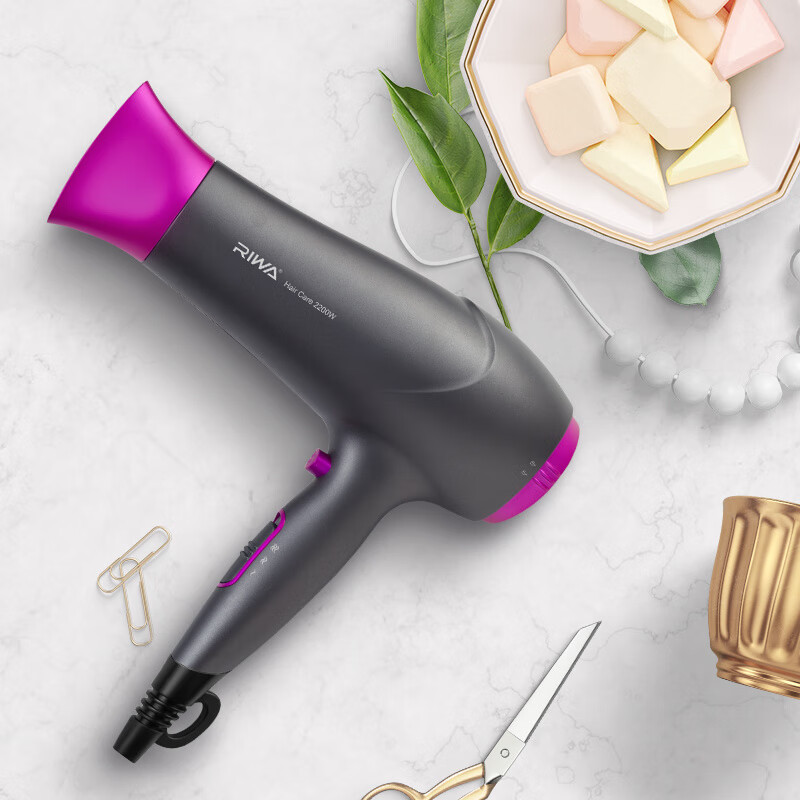 雷瓦(RIWA)大功率电吹风机家用不伤发理发风筒学生用 深灰配玫红