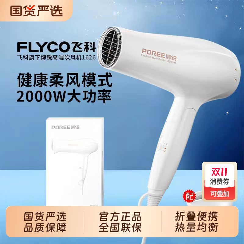 飞科博锐电吹风机家用宿舍用学生旗舰正品强力大功率大风力吹风筒 2000w功率 可折叠 博锐1626 送风嘴
