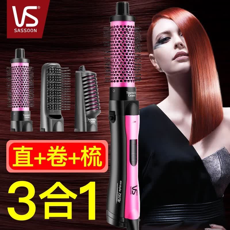 沙宣SASSON吹风梳直发梳卷发棒吹梳一体电吹风多功能造型神器宿舍可用 黑色直卷梳三合一80PICN