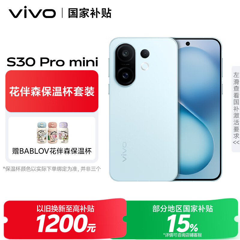 vivo S30 Pro mini 16GB+512GB 薄荷青【花伴森保温杯套装】6.31英寸多彩小直屏 6500mAh续航 AI手机