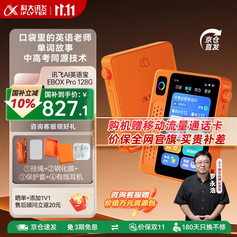 科大讯飞AI英语宝 EBOX Pro 听力宝 电子词典 小初高中学习必备 英语学习考研神器 英语宝EBOX Pro 128GB -心想事“橙”