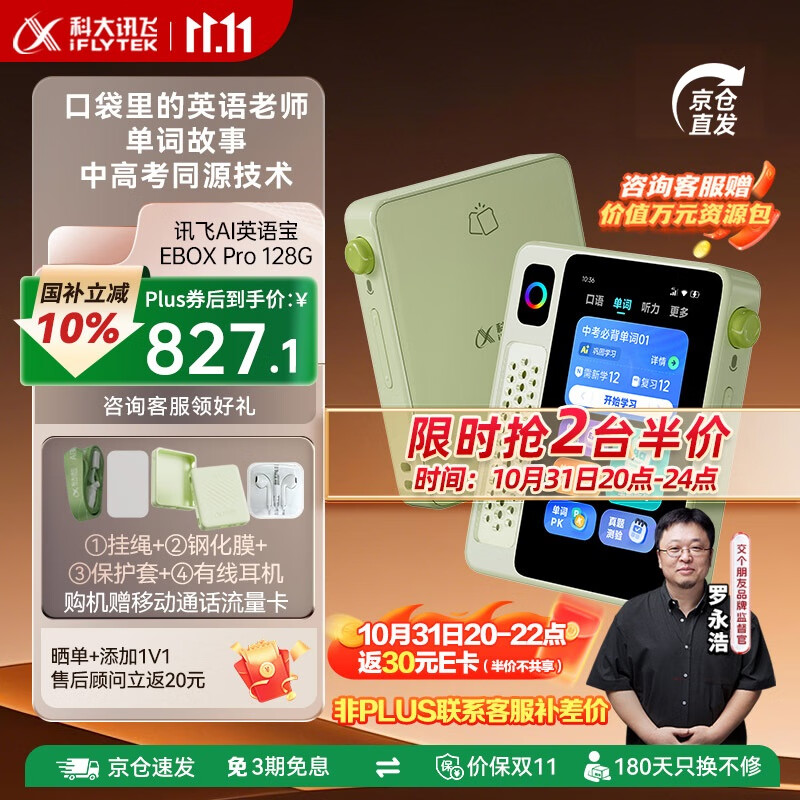 科大讯飞AI英语宝 EBOX Pro 听力宝 电子词典 小初高中学习必备 英语学习考研神器 英语宝EBOX Pro 128GB -炉火纯“青”