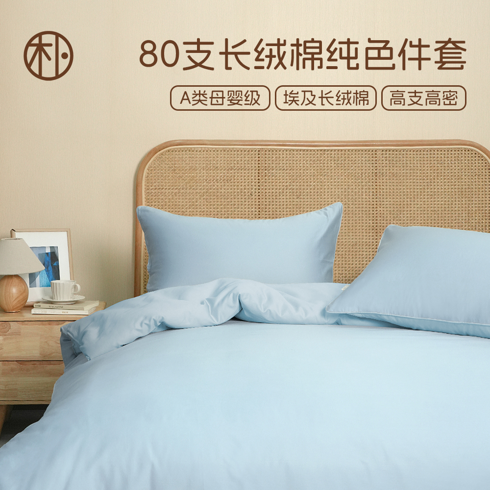 适用1.5米床,建议搭配200*230cm被芯 星郎纯色四件套 【正品】大朴A类80支埃及棉四件套被套床单套件轻奢高端床品