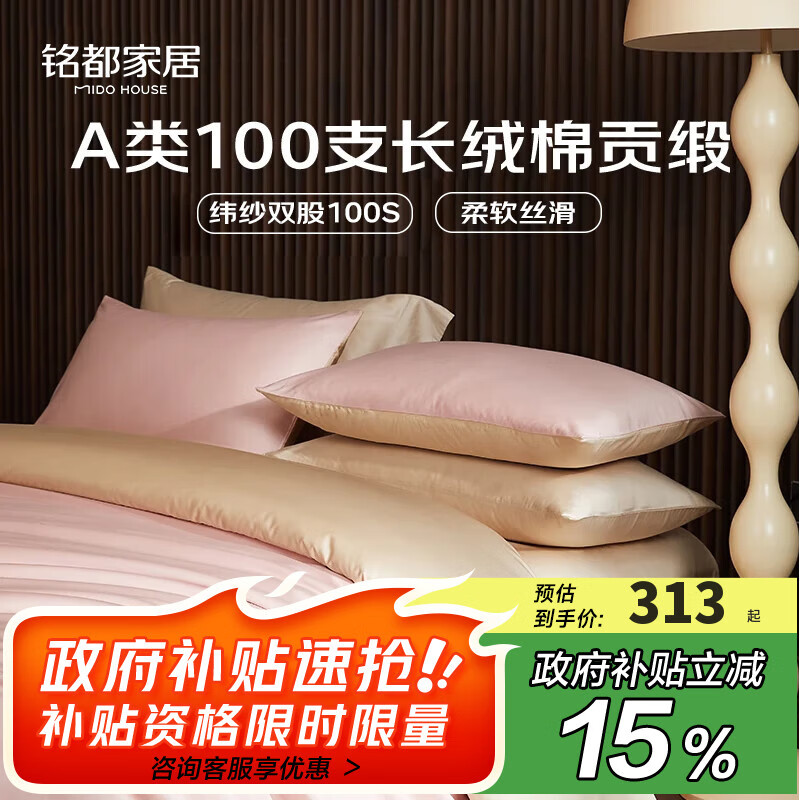 MIDO HOUSE铭都100支床上四件套100%A类纯棉秋冬床品床单被套床笠床罩三件套 蔷薇粉配香槟金【100支长绒棉-基础款】 1.5m 床笠款 (被套200*230cm)