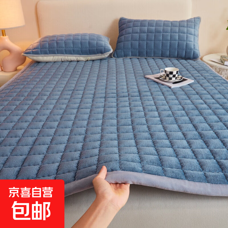 百亿补贴:南极人(Nanjiren)牛奶绒床垫褥子1.5米x2米加绒加厚床褥垫被单人床垫宿舍软垫子 兔兔绒-宝石蓝【蓄热保暖 拒绝掉毛】 双人床:150x200cm【3秒速暖可机洗】