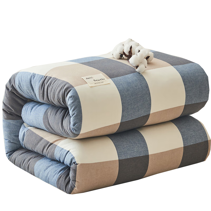 南极人(Nanjiren)新疆棉花被子被套两件套棉被1.5x2米秋被芯冬季床褥子全套一整套 可拆洗-蓝大格【新疆棉花填充】 单人被-150x200【被套+棉花被】约4.2斤