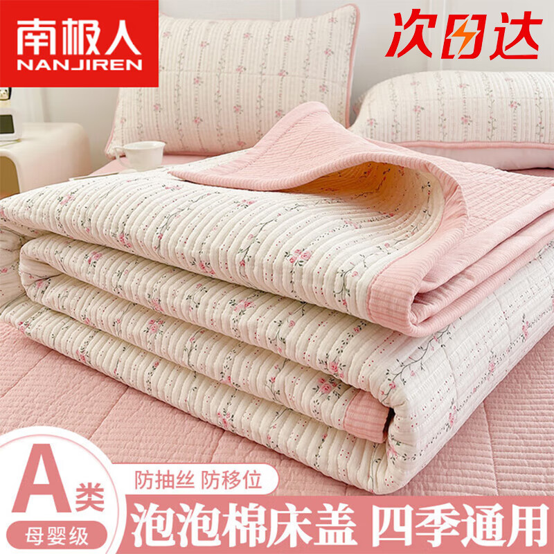 南极人ins泡泡棉床盖三件套加厚夹棉床单单件四季通用床褥榻榻米床护垫 沐歌【A类夹棉 四季通用】 200x230cm床盖单件