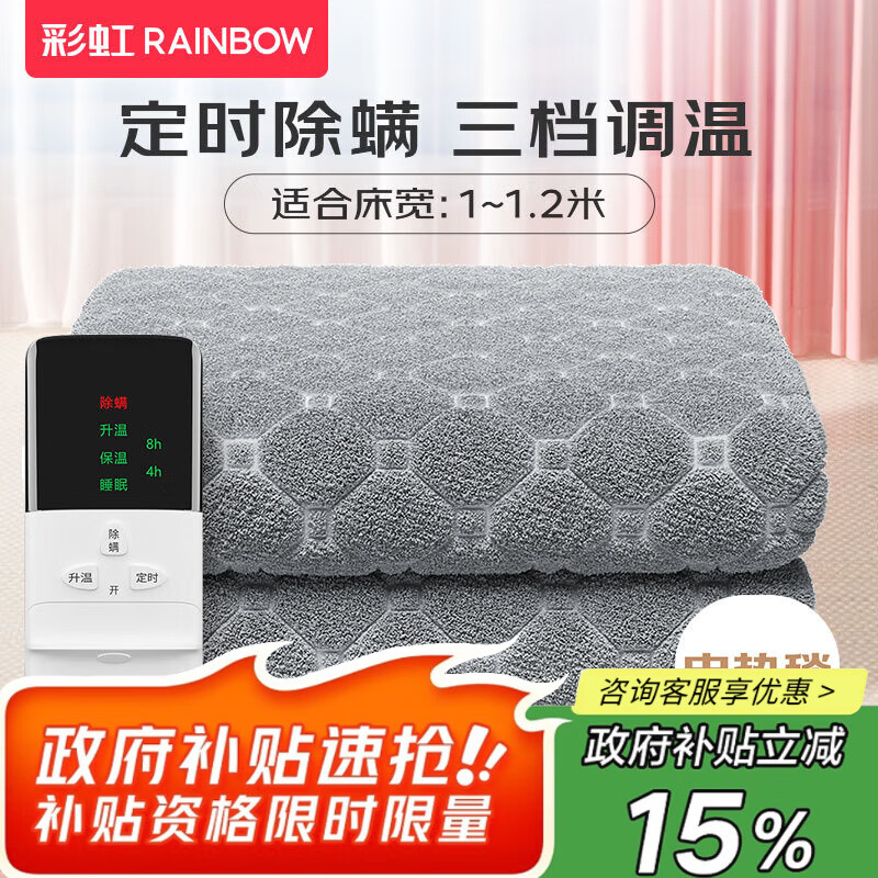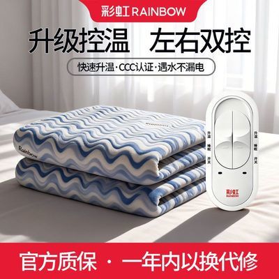 百亿补贴:彩虹电热毯双人双控安全调温家用排潮烘被遇水不漏电褥子官方旗舰