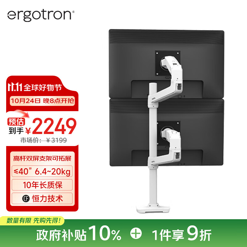 爱格升(ERGOTRON) 40“双屏支架大屏双显示器支架臂电脑显示器显示屏支架显示器增高架电脑桌(45-509-216)白色