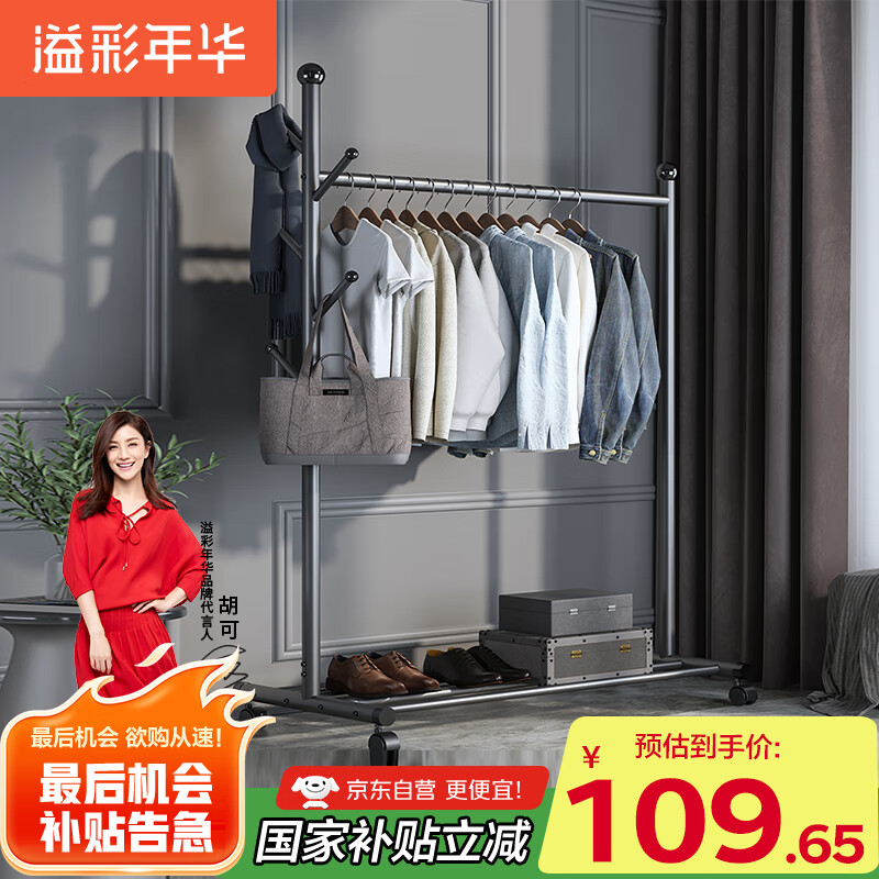 溢彩年华晾衣架落地置物简易衣架挂衣服卧室挂衣架阳台晾衣杆凉晒衣架2501