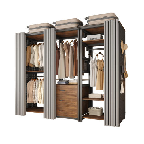 开放式『两层款』长0.6米-带帘 衣帽架落地卧室家用开放式组合衣柜简易收纳挂衣架金属衣帽间架子