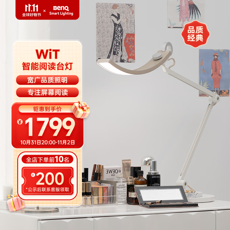 明基(BenQ) WiT台灯护眼全光谱桌面学习阅读办公卧室床头智能简约金