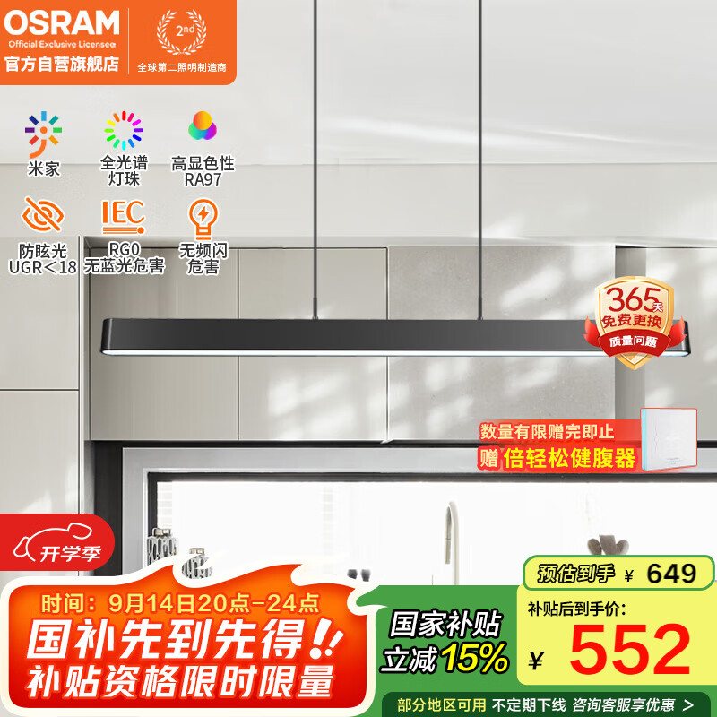 欧司朗(OSRAM)客厅餐厅餐桌led吊灯北欧后现代简约吧台灯黑色CDS001