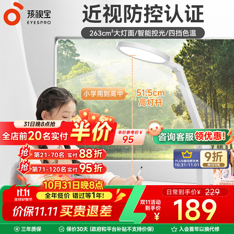 孩视宝AA级全光谱护眼学习台灯学生专用智能读写护眼灯儿童床头阅读台灯 防控近视认证-四档色温-VL161A