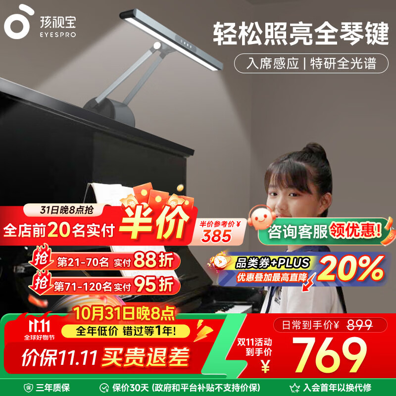 孩视宝护眼钢琴灯全光谱练琴专用台灯儿童入座感应卧室学习乐谱灯OH26-P