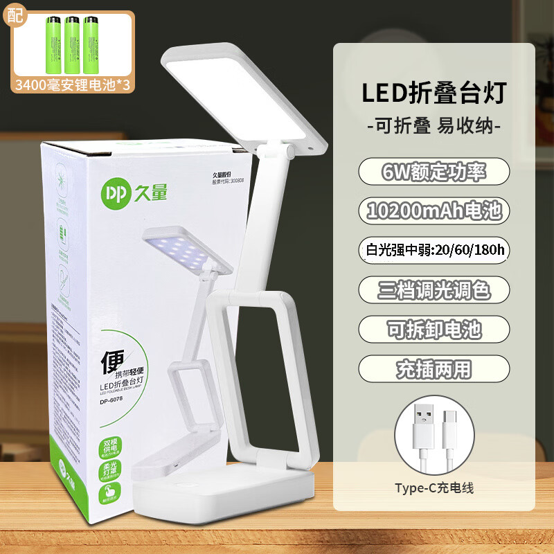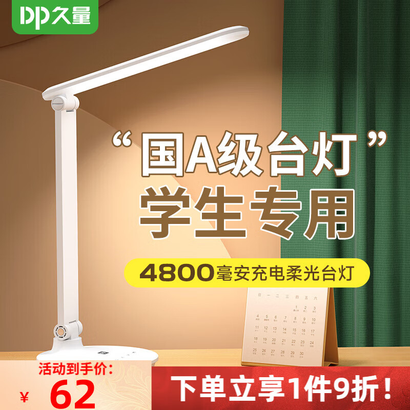 久量(DP)柔光台灯国A 学生儿童学习作业宿舍卧室书桌充插两用应急调光办公 国A级【4800毫安+五档调光+充/插两用】 【无蓝光危害】【无可视频闪】