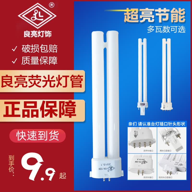 良亮 台灯荧光灯管 单H四方针四平针 螺纹接口 2U型三基色灯管 18W单H四方针