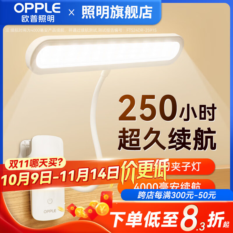 欧普照明A级小台灯护眼宿舍学习专用床头阅读夹子灯充电小夜灯 A级【4000毫安】【调光调色】 【A级照度】【送Type-C充电线】
