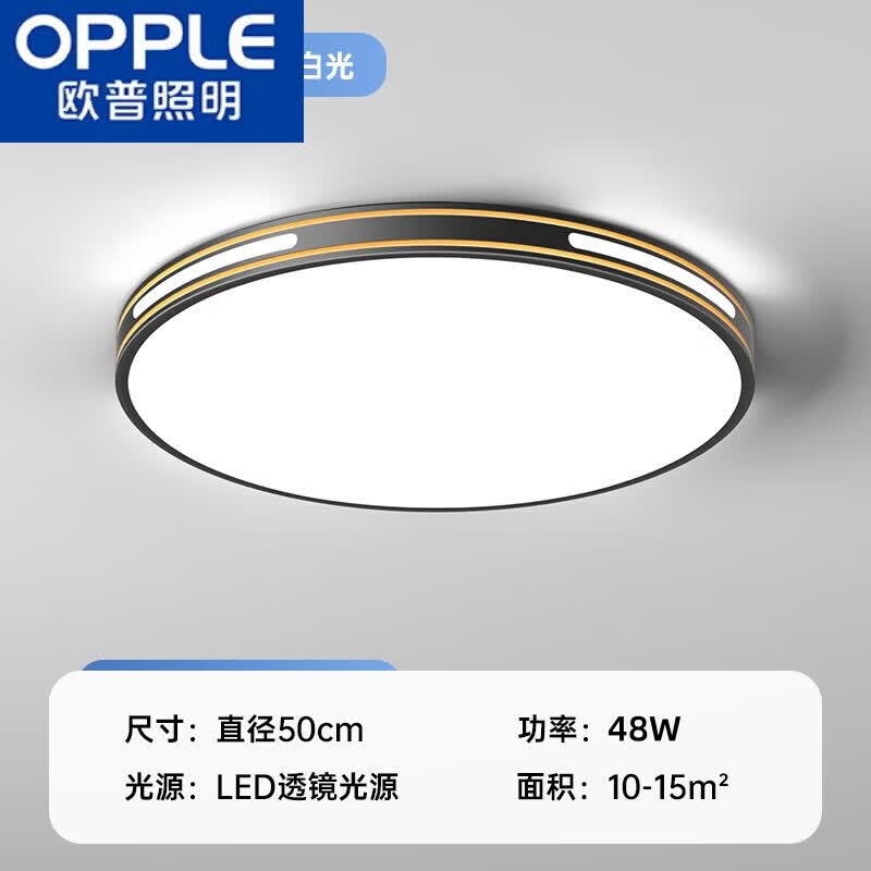 欧普照明(OPPLE)卧室灯主卧2025新款led吸顶灯现代简约客厅房间餐厅书房阳台灯具 48W 镂空黑金50cm高光13-18