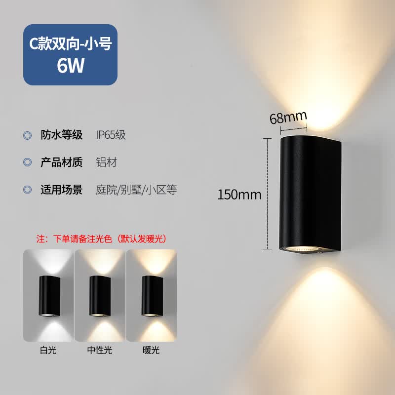 欧普照明LED壁灯户外防水洗墙灯双头射灯室外酒店庭院别墅外墙过道阳台灯 C款双向6W-暖光