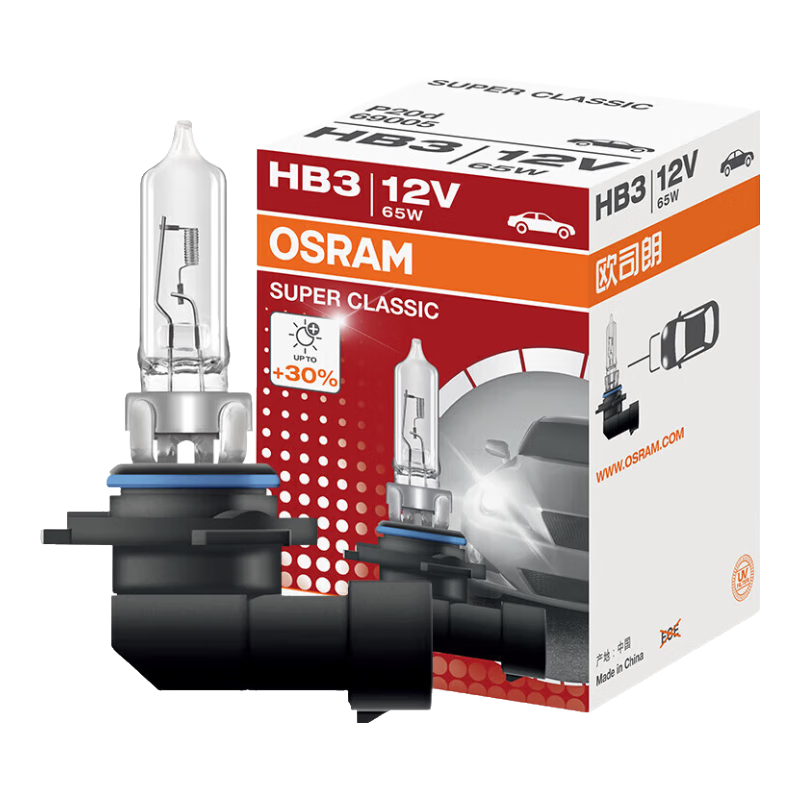 欧司朗(OSRAM)远亮型卤素灯SUP升级款汽车大灯远光灯近光灯 HB3/9005 12V单只