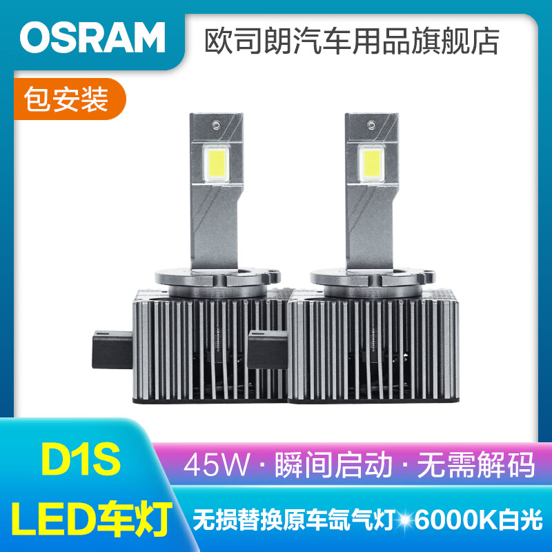 欧司朗D系列LED大灯灯泡6000K原车氙气疝气无损替换 D3S(45W 60颗灯珠 1对装) LED即插即用 超亮聚光