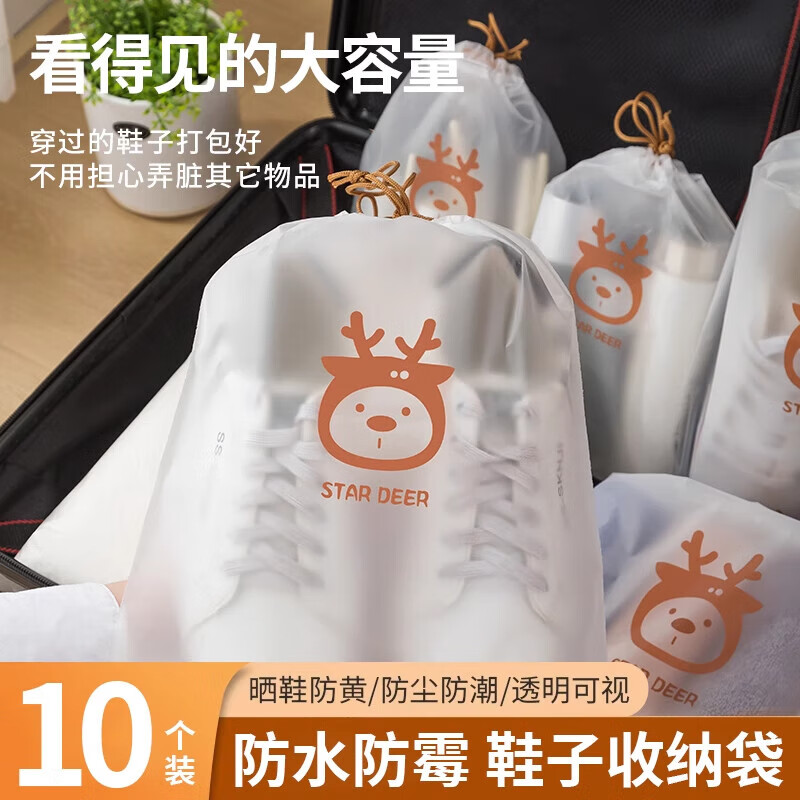 辛丛鞋袋鞋子旅行收纳袋晒鞋防尘防黄小白鞋洗鞋套晾鞋一次性收纳袋子 大号【10个装】-可循环使用
