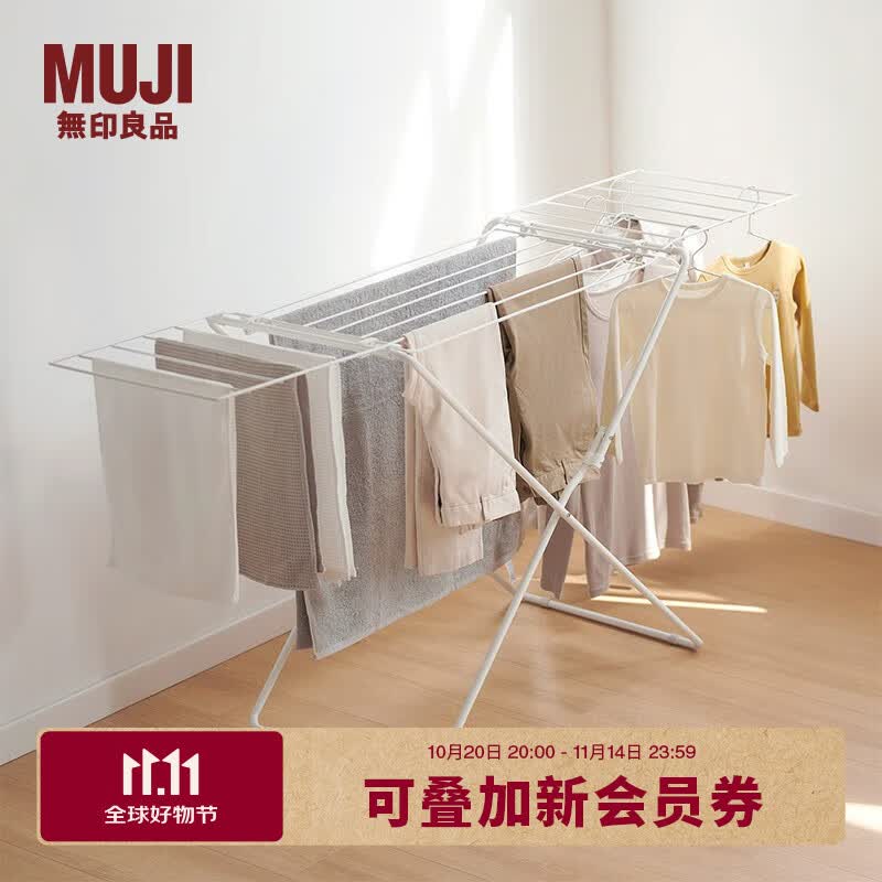 无印良品(MUJI)铁制室内晾晒架落地晾衣架家用白色大