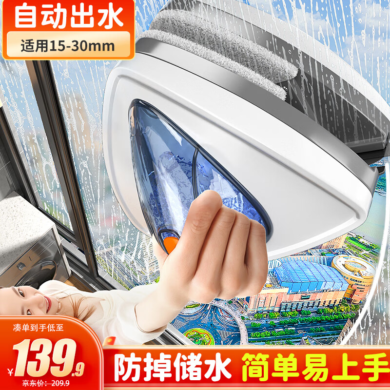 佳帮手擦玻璃神器15-30mm防掉储喷水玻璃擦刮双面强磁擦窗神器清洁工具