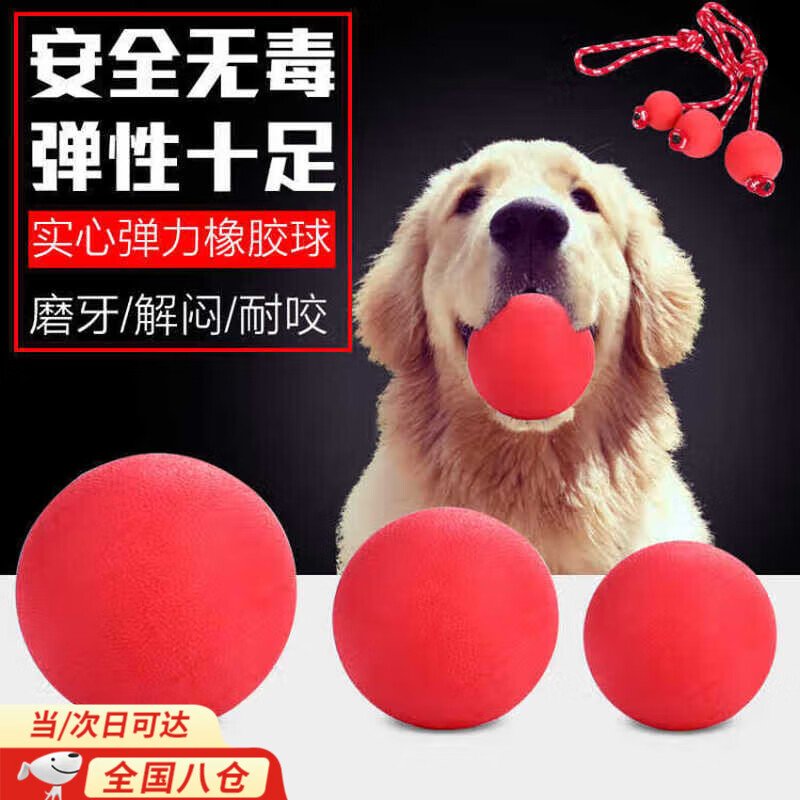 山头林村宠物耐咬磨牙球实心橡胶弹力球玩具狗球耐咬训狗球训犬球狗啃咬球 普通款实心球(不带绳6.8cm)