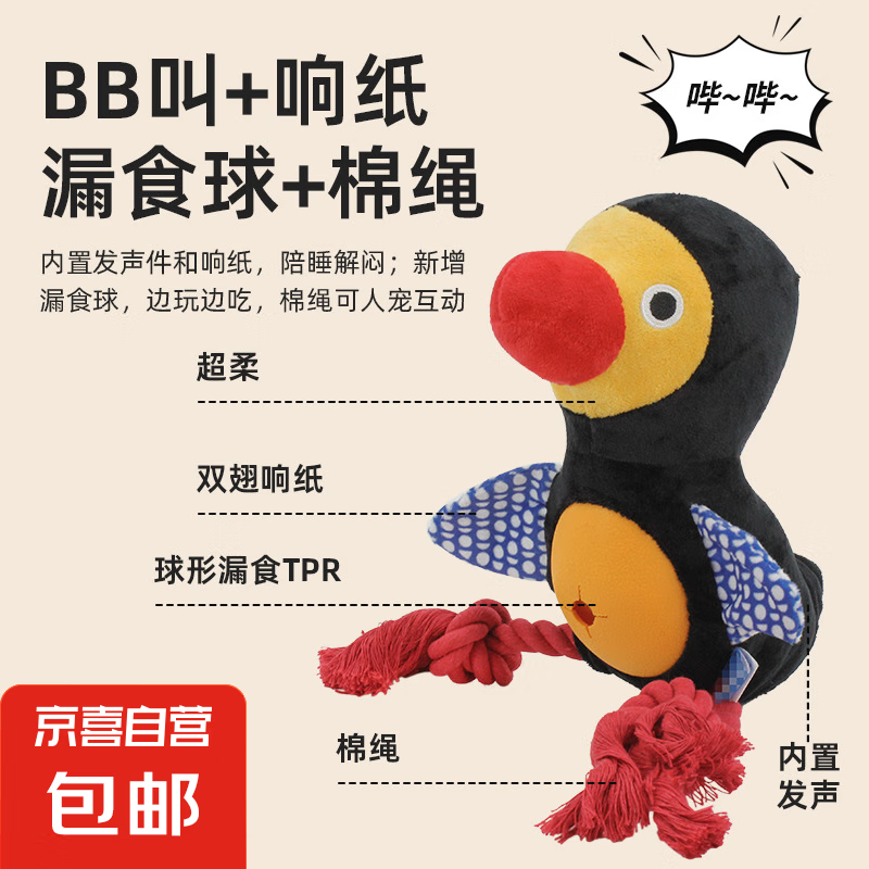 【出口沃尔玛】宠物解闷发声漏食狗狗啃咬磨牙洁齿棉绳黑鸟玩具 19*20cm