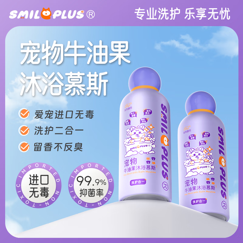 SMILE PLUS开颜宠物猫咪狗狗沐浴露抑菌除臭除螨牛油果沐浴慕斯香波300ml