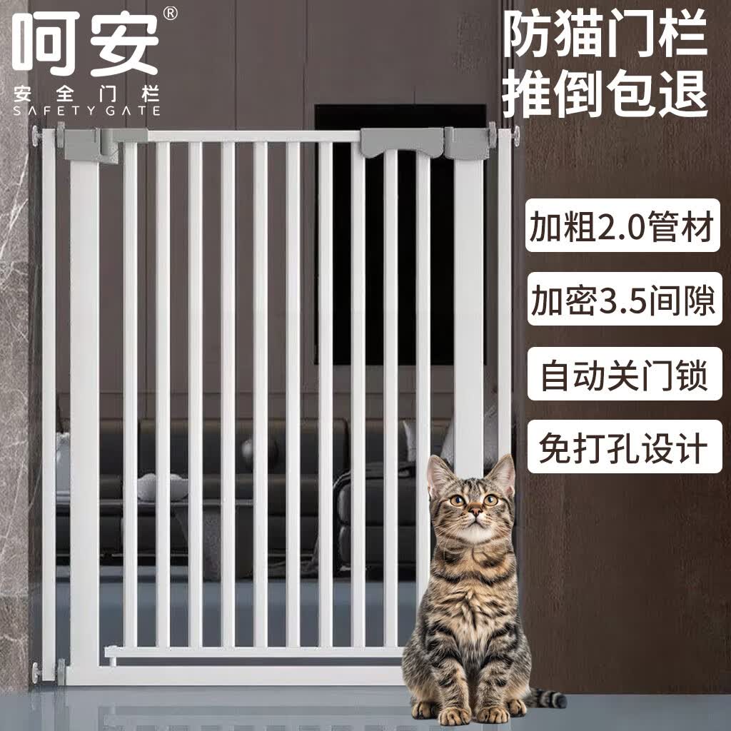 呵安宠物围栏防猫门栏狗狗栅栏隔离拦猫咪神器栏杆挡板室内狗护栏笼子 150CM高【拦老实猫】加密3.5间隙-自动关门 无需打孔-安装宽度:76-83cm