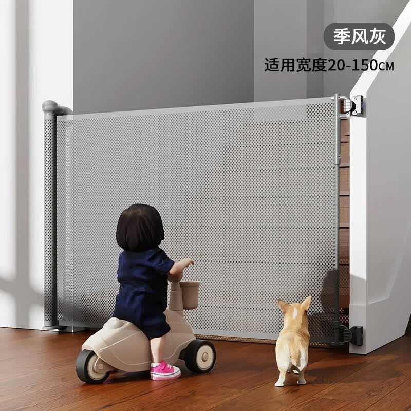 欧培楼梯防护栏儿童安全门围栏伸缩折叠门护栏宝宝门挡厨房宠物栅栏杆 季风灰适用 【可胶贴可打孔安装】 高度88*宽度20-140cm