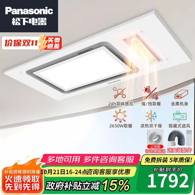 百亿补贴:松下浴霸暖风照明排气多功能一体智能浴室吊顶换气浴霸FV-40BLS1C