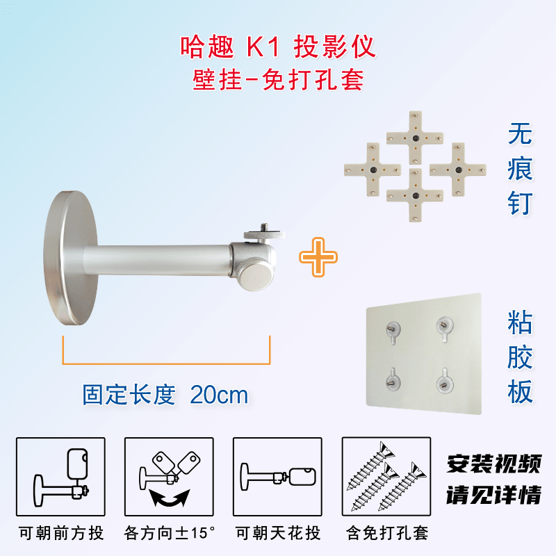 哈趣投影仪支架免打孔吊架伸缩吊顶壁挂桌面落地投影机架 壁挂-免打孔_(含_无痕钉+粘胶板)